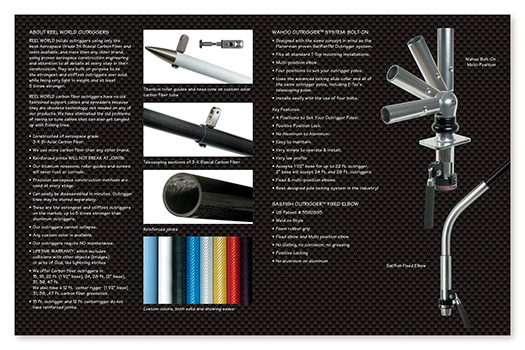 The intent here was to capture the world of high-end professional sport fishing and this company produces and distributes state of the art and top of the line products, specific to that industry. Along with the mark, I also created a complete hybrid font to be used throughout their marketing materials to support their brand. I also created an image to represent high-tech carbon fiber as it is material used in many of their products, and used it as a common background. The secondary product line called LIVE OCEAN uses the same font and imagery to tie it to the parent company.