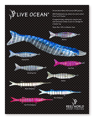 The intent here was to capture the world of high-end professional sport fishing and this company produces and distributes state of the art and top of the line products, specific to that industry. Along with the mark, I also created a complete hybrid font to be used throughout their marketing materials to support their brand. I also created an image to represent high-tech carbon fiber as it is material used in many of their products, and used it as a common background. The secondary product line called LIVE OCEAN uses the same font and imagery to tie it to the parent company.