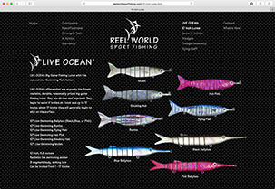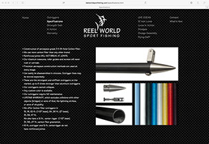 The Reel World Sport Fishing web site was designed to grow with the evolution of the company with the ability to add any future products. The subtle background pattern simulating carbon fiber is used to add a high-tech and high-end appearance. Also, I produced all of the product photography used throughout their company.