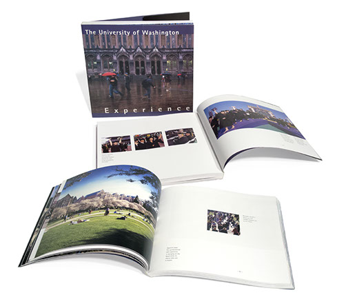 The Main objective here was to highlight campus life at the University of Washington. The book was produced for the UW Bookstore to sell to existing and potential students, and their families, as well as alumni. It consists of an extensive number of images from a single photographer who has spent many years documenting UW campus life.